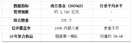 资产穿透: 依托 AI 风险监测系统,南方基金在 2025 年末的“债市到期潮”中提前布局,有效锁定了收益。